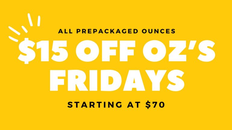 $15 OFF All prepackaged ounces (Friday Only). Inventory may vary at our Cambridge & Brockton Dispensary.
